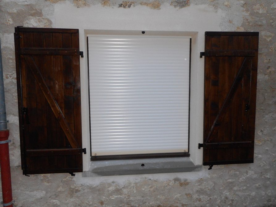 Finition enduit à la chaux et volet bois ouverture à la française à la demande des bâtiments de France (patrimoine classé proche du chantier).