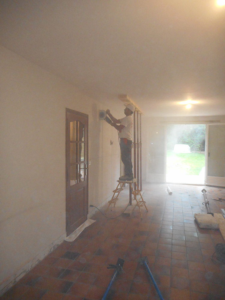 Les clients voulaient ouvrir leur cuisine à la pièce à vivre, pour cela nous devions ouvrir un mur porteur donc une reprise de charge.