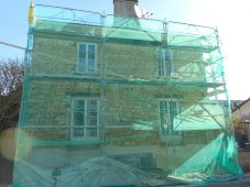 Piochage de l’ancien enduit jusqu’à la pierre,