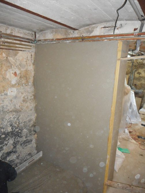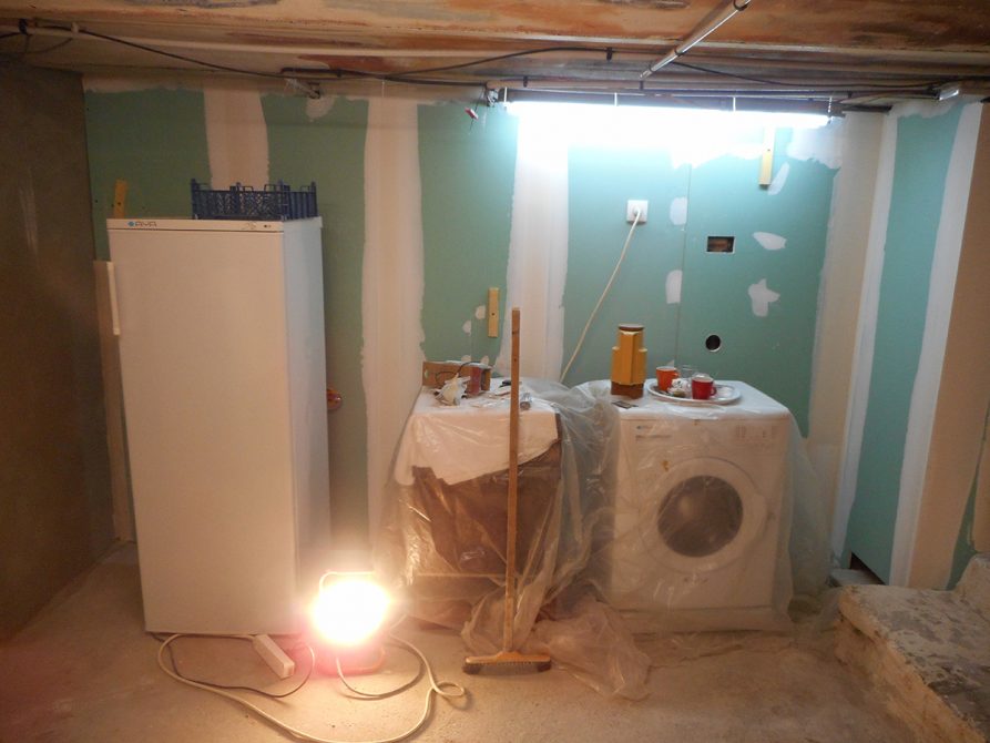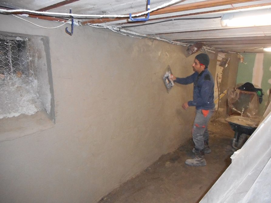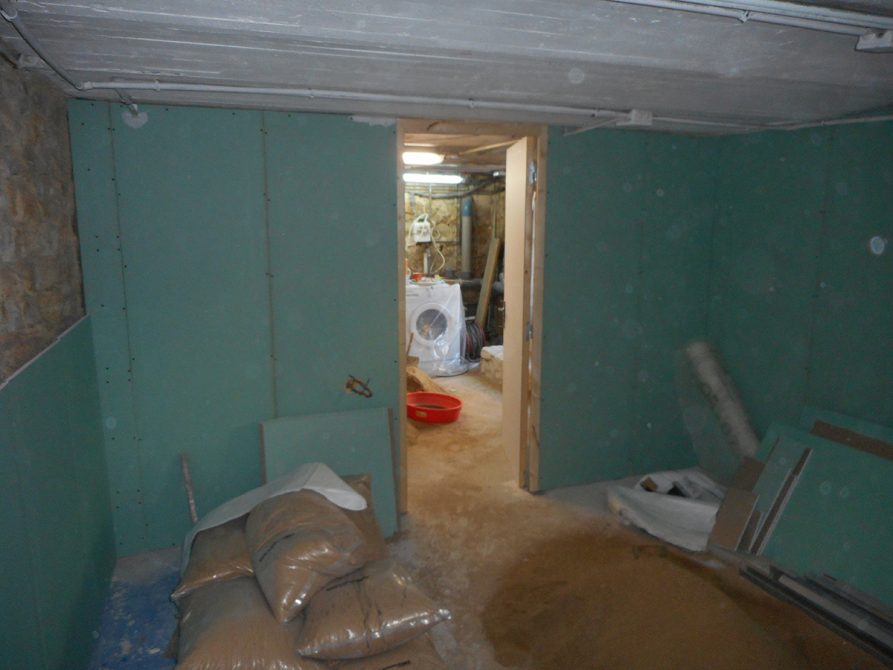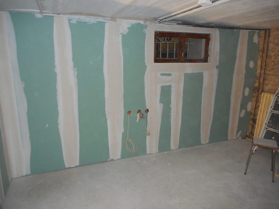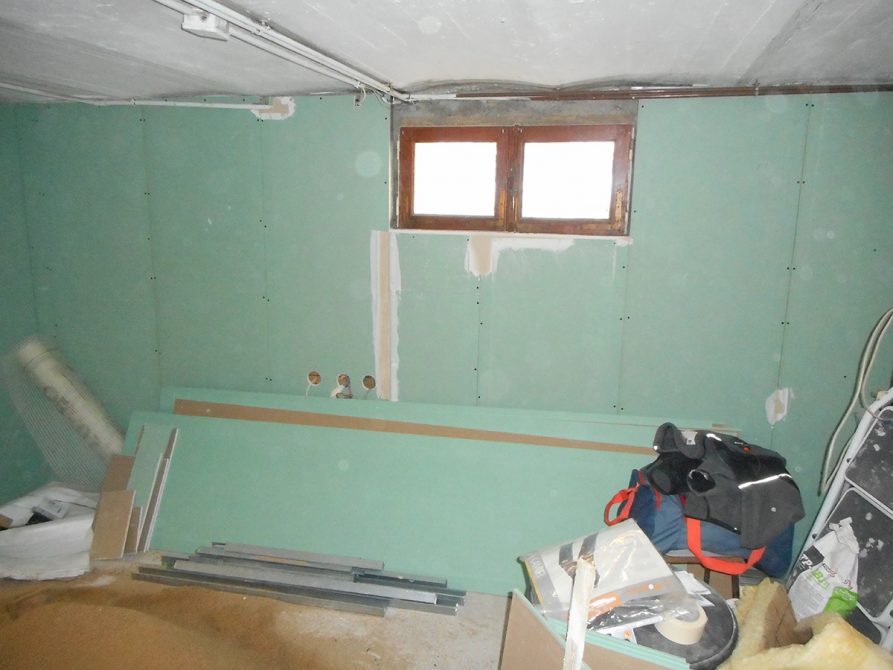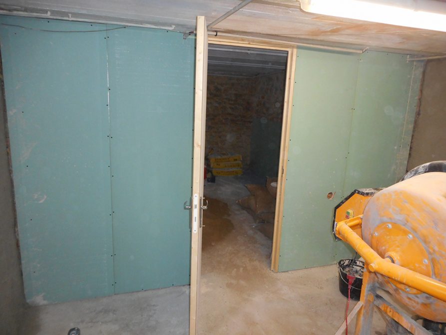 Le client cherchait à rendre sa cave plus agréable, pour cela 3F-CONSTRUCTION lui a proposé un enduit ciment taloché lisse dans une partie et plaque de plâtre hydrofuge (BA13) avec isolant au besoin