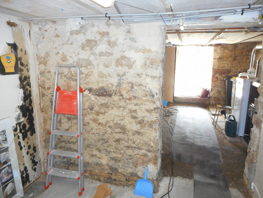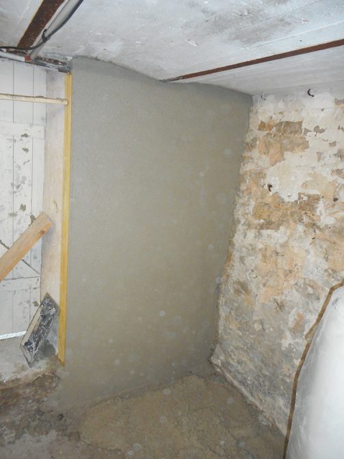Sachant que les murs étaient en pierre, il ne faut pas utiliser du ciment mais un ciment à la chaux pour laisser respirer le support. Afin d’avoir une bonne accroche et d’éviter les fissures une maille est préconisé.